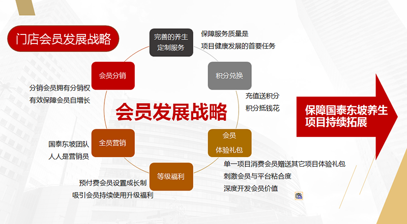 实体门店+线上(连锁)掌上御养堂双赛道盈利,实体连锁店1+3+N快速裂(复制)裂变盈利模式,一店多营,五重盈利空间(东坡养生系列项目服务,东坡养生系列产品推广,东坡养生仪器设备销售,大健康抗衰多品类定制,东坡养生御膳食疗),店内实行会员一卡通用,会员顾客在店内自主透明消费,打造中国养生业的麦当劳,海底捞。给大健康养生顾客一个透明、清静的服务环境,所有连锁门统一运营管理,店内项目简单而有特色,员工能快速学习复制,并为顾客提供优质服务,店内的每一个环节的设定都蕴含着东坡养生人的心血、亲历着国泰东坡御养的点点滴滴。